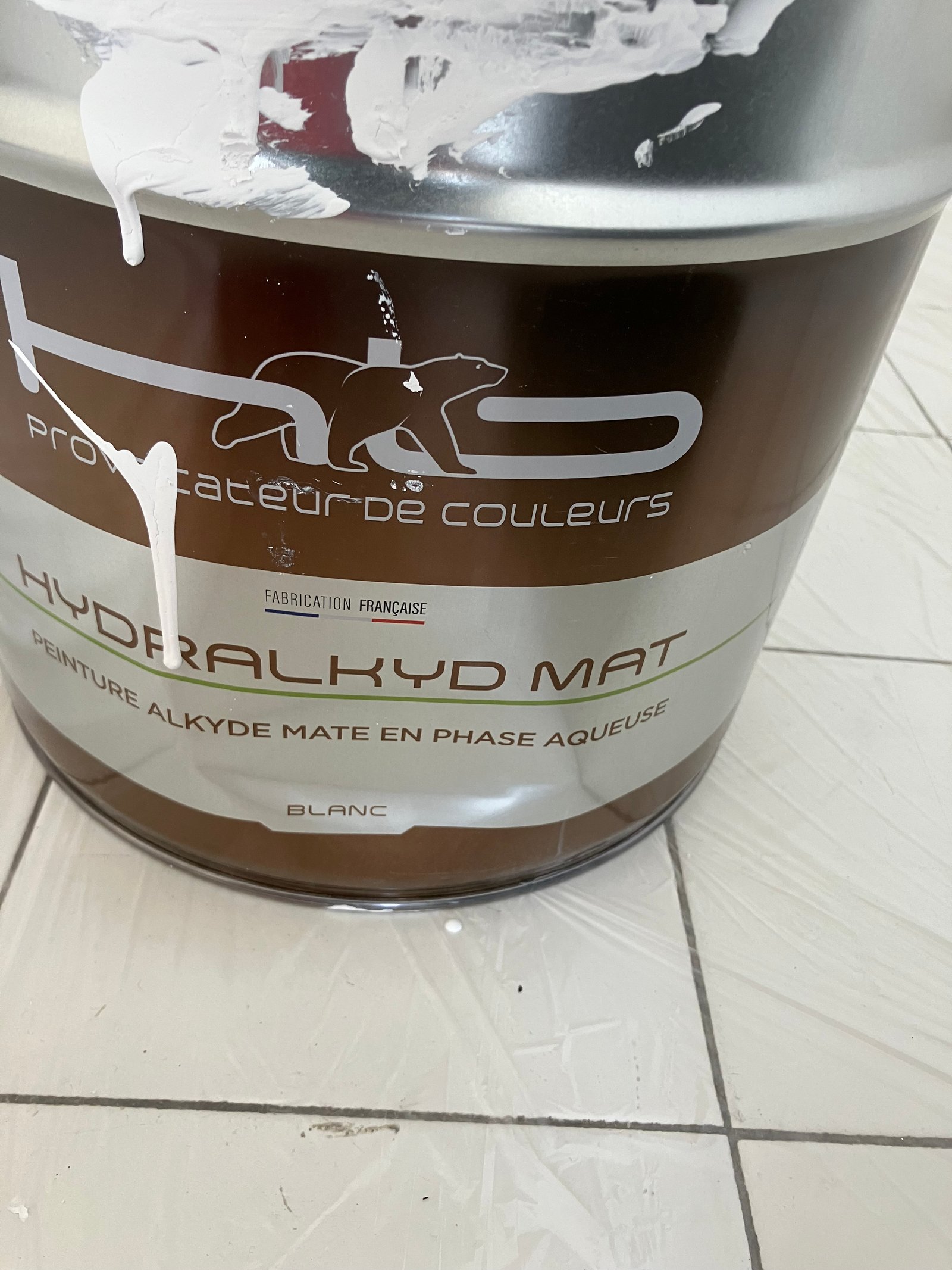 Bah croivez moi ou pas mais y’en a un de comptoir tout proche, re coup de féfé, c’est les doberman qui étaient contents, et m’y voilà avec l’Halomat dans un coin de la tête. Je discute avec le gars et un pro qui attendait son tour et ils me conseillent Hydralkyd mat.